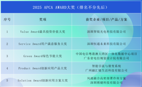 《中国数据中心与布线品牌榜》主要媒体矩阵 02 重要表彰环节 最后,活动还举行了 APCA AWARD与《亚洲数据中心科技杰出贡献》表彰环节,由APCA秘书长胡雅菲女士、APCA副秘书长黄文光先生为获奖企业代表进行颁奖。其中,APCA AWARD旨在挖掘和表彰在云端创新应用、大数据、数据中心、智能产品等关键领域作出卓越贡献的企业与个人,以激励行业不断开拓创新。而《亚洲数据中心科技杰出贡献》旨在表彰数据中心领域的杰出企业,颁发荣誉证书,以肯定其对行业的卓越贡献,推动数据中心领域持续进步。